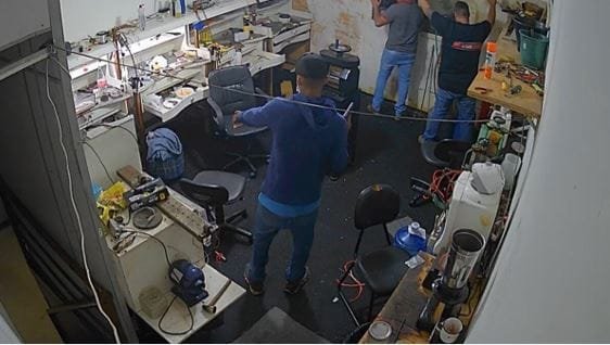 Vídeos divulgados pela Polícia Militar mostram o momento em que os quatro suspeitos de assaltarem uma joalheria no Setor Campinas, em Goiânia, entraram na loja e renderam os funcionários. O crime, praticado na tarde de sexta-feira (3), foi registrado pelas câmeras de segurança da loja. As filmagens também registraram quando os quatro fogem levando os produtos.
