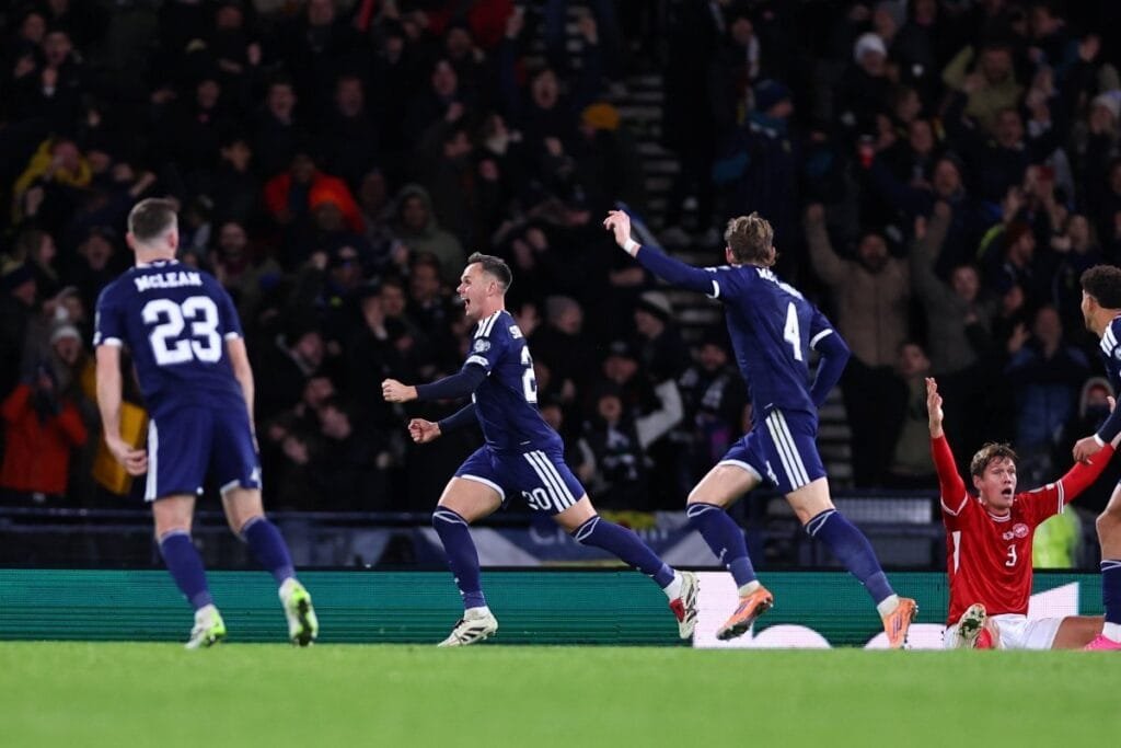 Os escoceses triunfaram por 4 x 2 em Edimburgo. McTominay abriu o placar, Hojlund igualou de pênalti e Shankland recolocou a Escócia na frente. Nos acréscimos, Tierney e McLean consolidaram a classificação histórica.