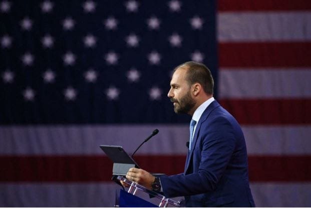 Eduardo, que se mudou para os EUA em março dizendo que só voltaria com a liberdade do pai e o impeachment do ministro Alexandre de Moraes, do STF, apontou risco de mudança de regime no Brasil.