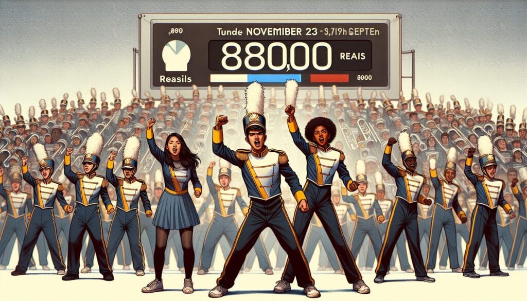 Estudantes da banda marcial e a meta de R$ 80 mil