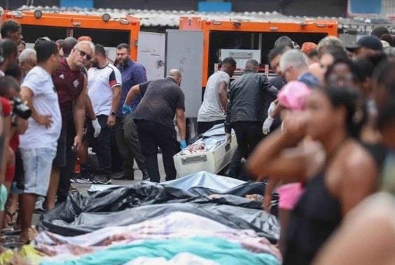 Moradores do Complexo da Penha, na Zona Norte do Rio de Janeiro, levaram na madrugada desta quarta-feira (29) mais de 50 corpos para a praça São Lucas. Segundo relatos da população, os corpos foram localizados na mata entre os complexos do Alemão e da Penha, onde foi realizada a Operação Contenção, a mais letal da história do estado, na terça-feira (28/10).