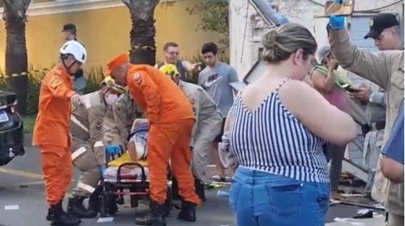 A idosa, que trabalhava no momento do acidente, foi retirada dos destroços e levada para atendimento médico.