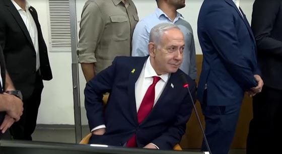 Netanyahu chegou ao tribunal em Tel Aviv sorrindo, vestindo terno preto e gravata vermelha, cercado por vários ministros. Ao chegar ao tribunal, a comitiva do premiê foi vaiada por um grupo de manifestantes que estava no local.