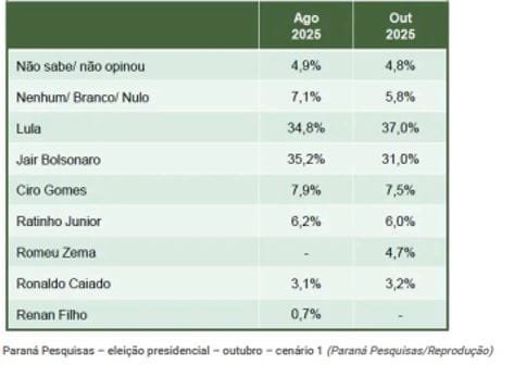 O levantamento sobre a sucessão presidencial divulgado nesta segunda-feira, 27, pelo instituto Paraná Pesquisas, contraria a afirmação do presidente Luiz Inácio Lula da Silva, em Kuala Lumpur, na Malásia, também feita hoje, de que o ex-presidente Jair Bolsonaro “faz parte do passado da política brasileira”. Ao ser questionado sobre as menções elogiosas do presidente dos EUA, Donald Trump, ao ex-presidente brasileiro durante a reunião entre os dois líderes, o petista respondeu de forma direta: “Ele sabe que rei morto, é rei posto”.