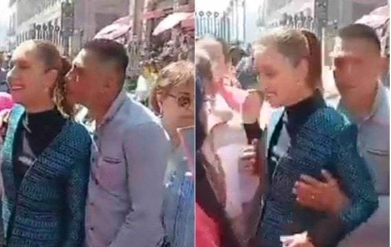 Claudia Sheinbaum foi tocada por um homem enquanto cumprimentava apoiadores no centro da capital mexicana; agressor foi detido no local