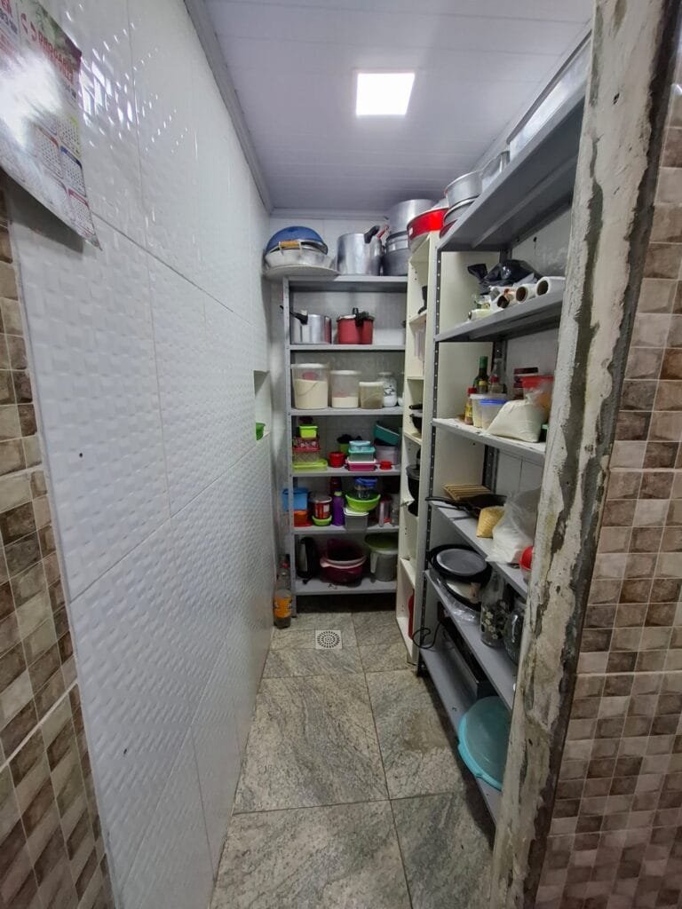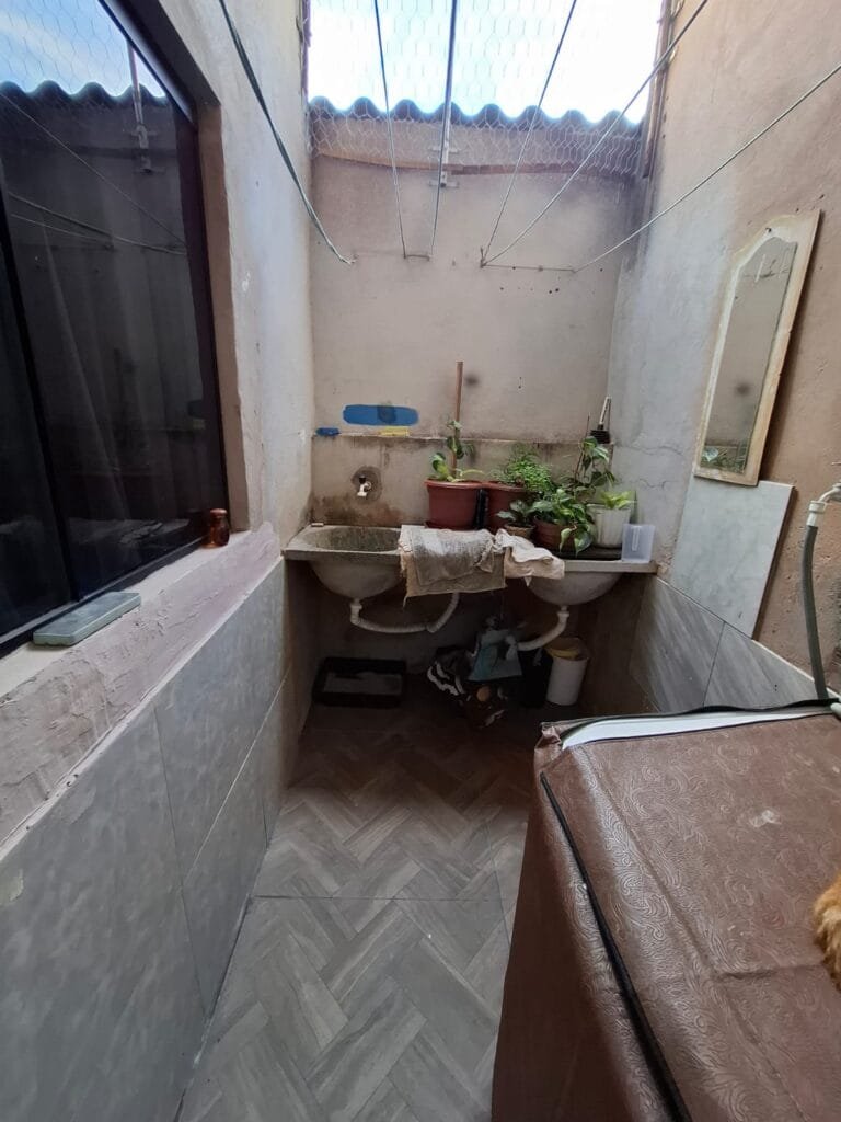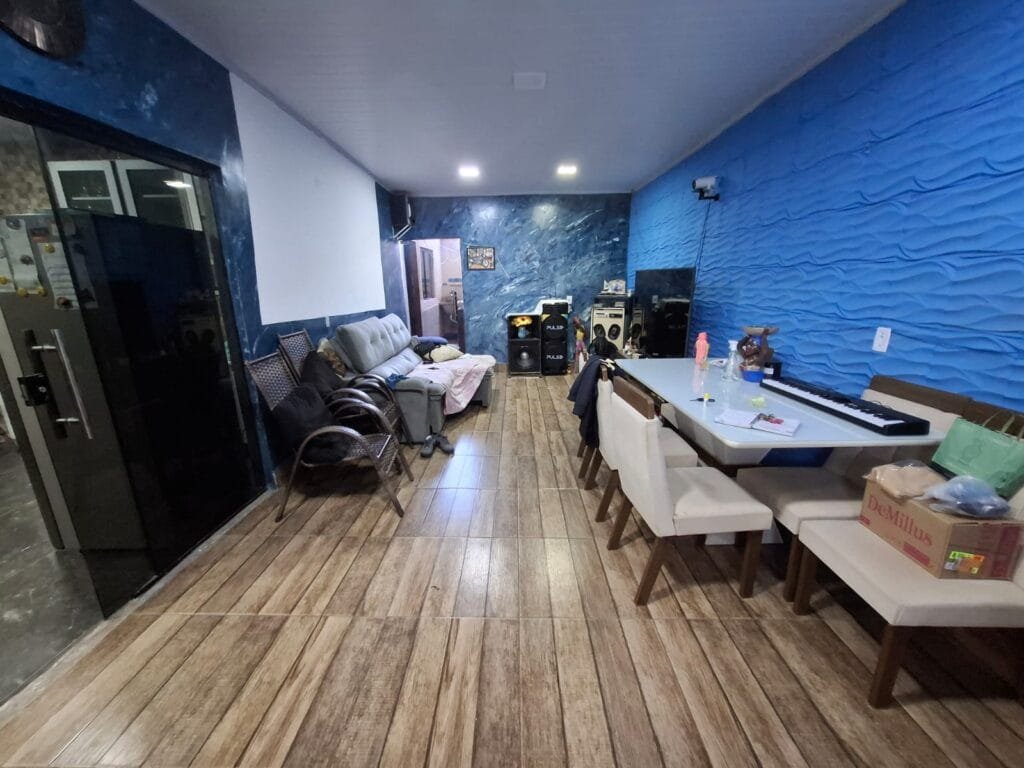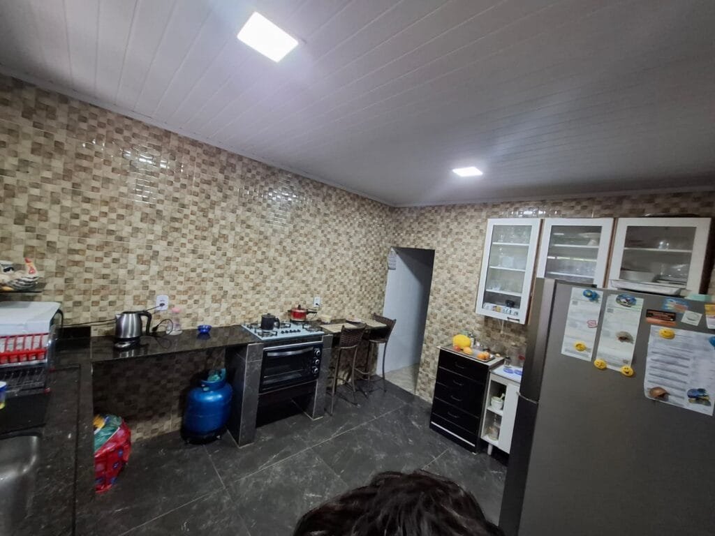 2 salas ,4 quartos, 3 banheiros, 2 cozinhas, uma dispensa, uma área de serviço e 1 área e uma área com garagem